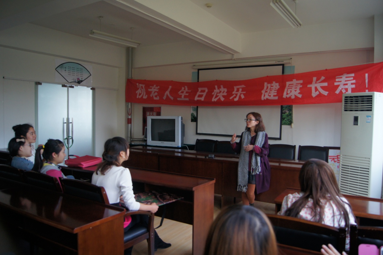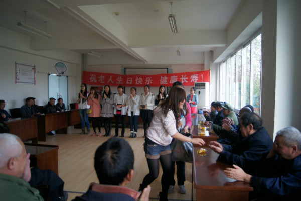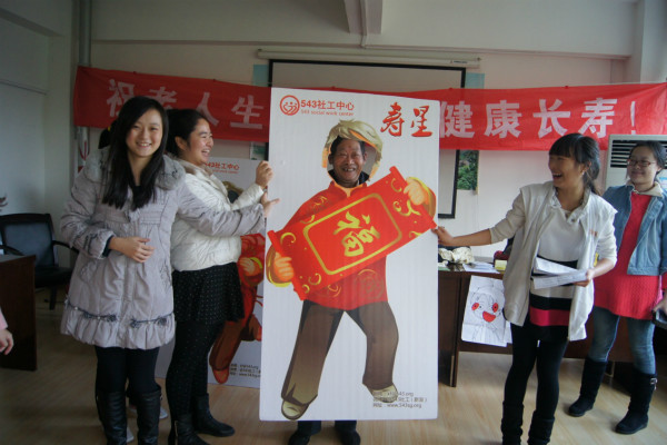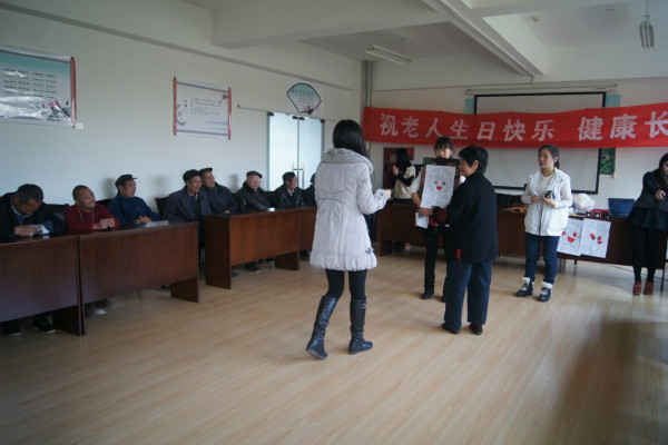 十一月生日会是在543社工的全程指导下,由四川师范大学“繁星”志愿者项目的志愿者们精心策划、筹备并开展的。节目包括欢乐开场的歌曲串烧、养生保健操示范、太极拳展示以及两个备受老人们欢迎的趣味游戏:贴鼻子和拼图。寿星们都积极参与,活动气氛一直非常热烈。
