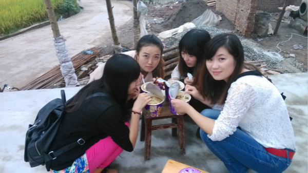 忙碌的时候,他们一起吃泡面