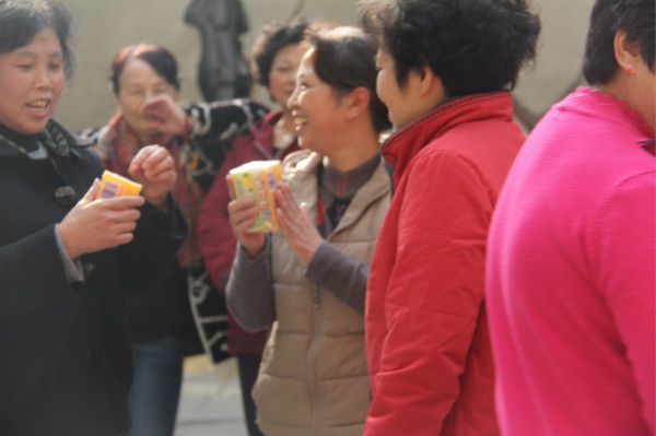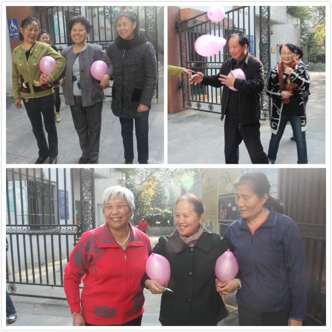 “嘭”!气球爆了,大妈们着急催旁边儿的社工小妹赶紧给补上,生怕耽搁了时间!“等到,我来个”,车大爷从人群中窜出来,一股脑儿从社工小陈手中夺过两气球,和两大妈凑成一组,麻溜儿地在第一轮游戏中以12秒04分夺得冠军。旁边大妈组甚是不服,要求重跑一次,结果以10秒的好成绩打破当场记录,为此社工特意颁发了奖品以示鼓励与祝贺!