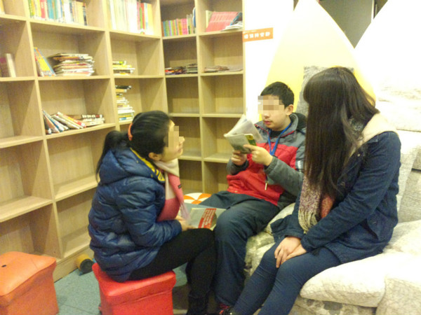 在志愿者的引导下,“星儿”及其家长进行亲子阅读