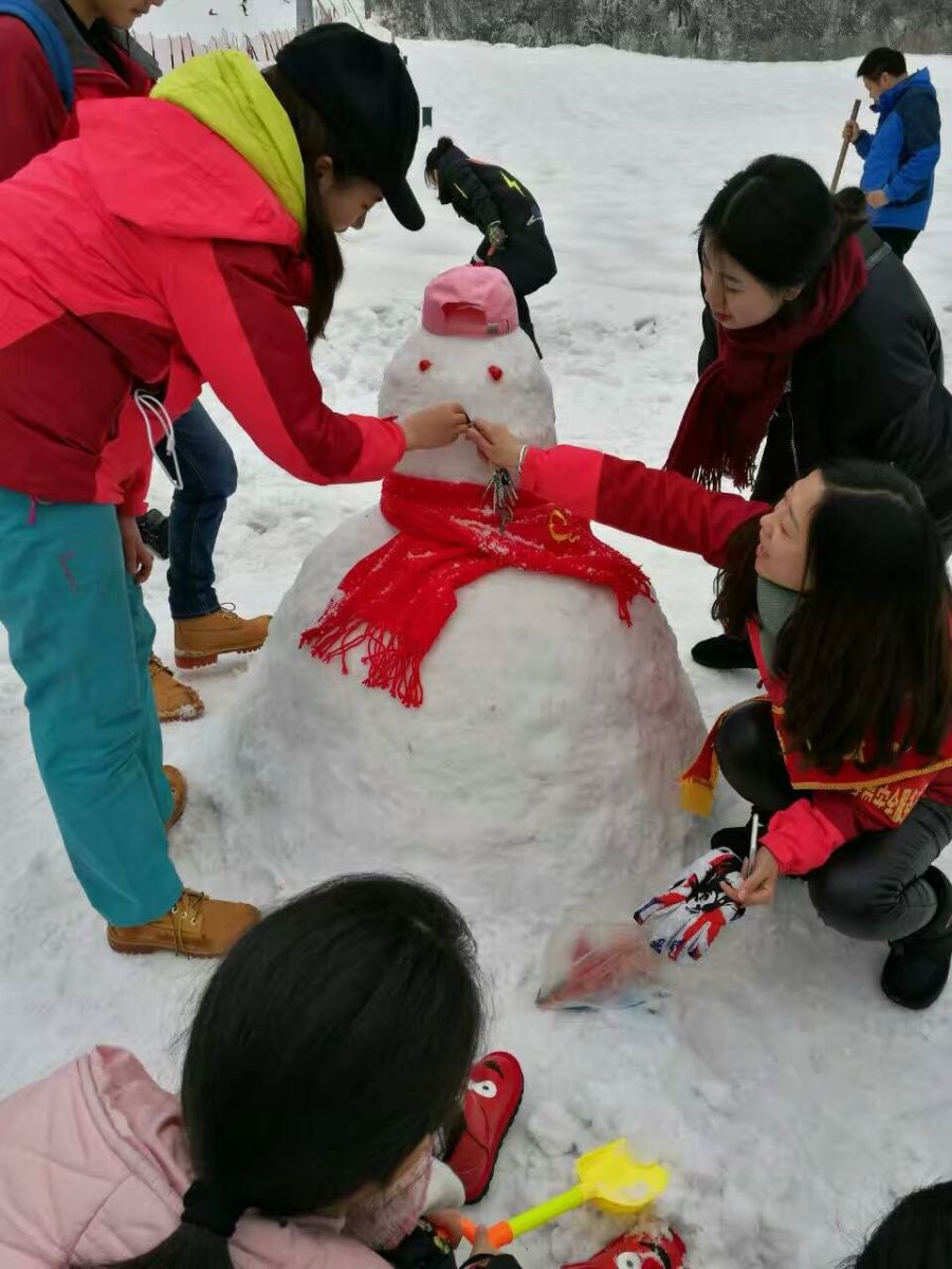 社工陪伴寒寒一起堆雪人