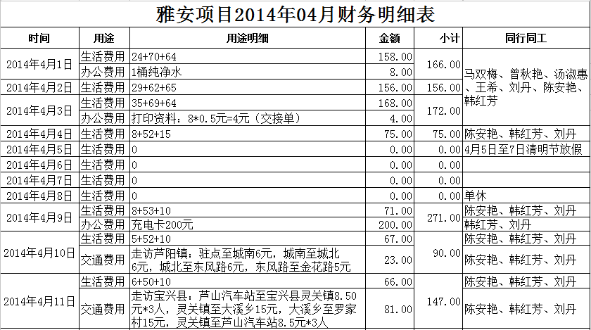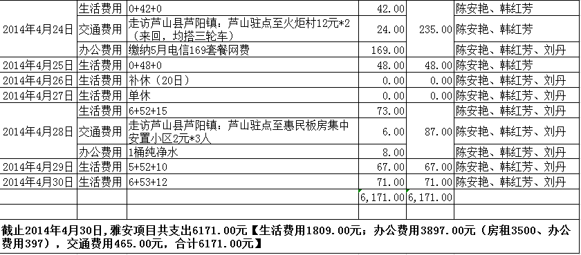 ·【雅安项目】2014年04月财务明细表