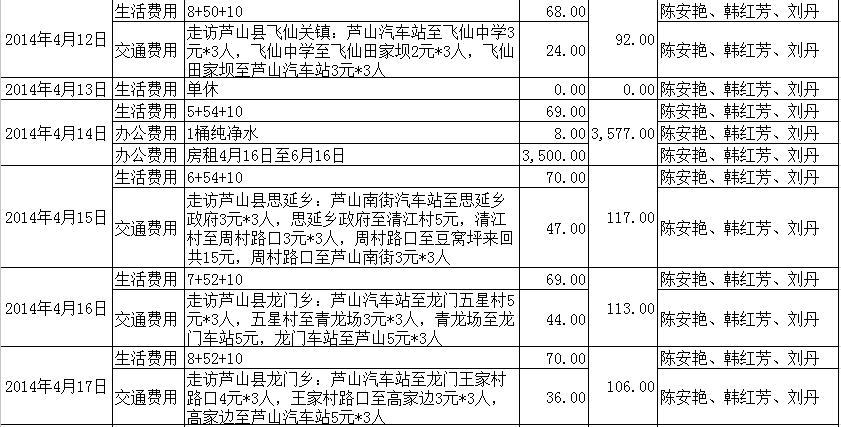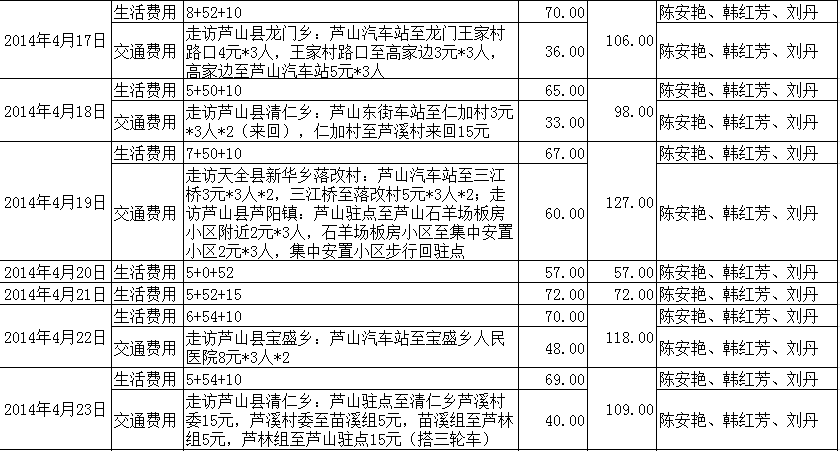 【雅安项目】2014年04月财务明细表
