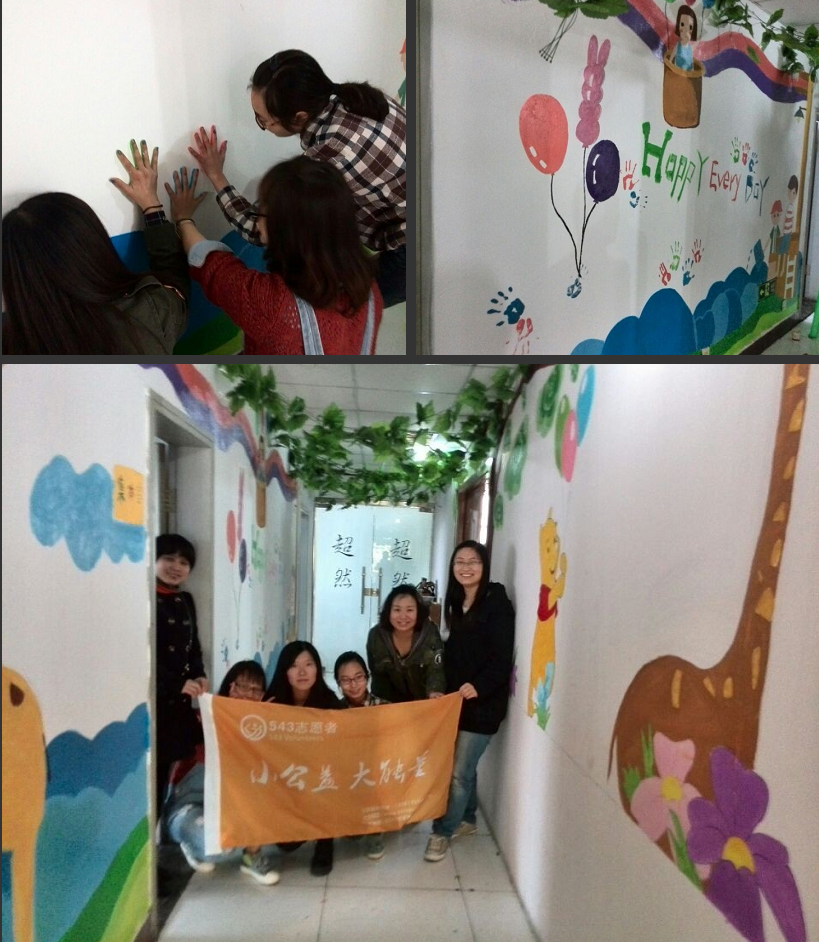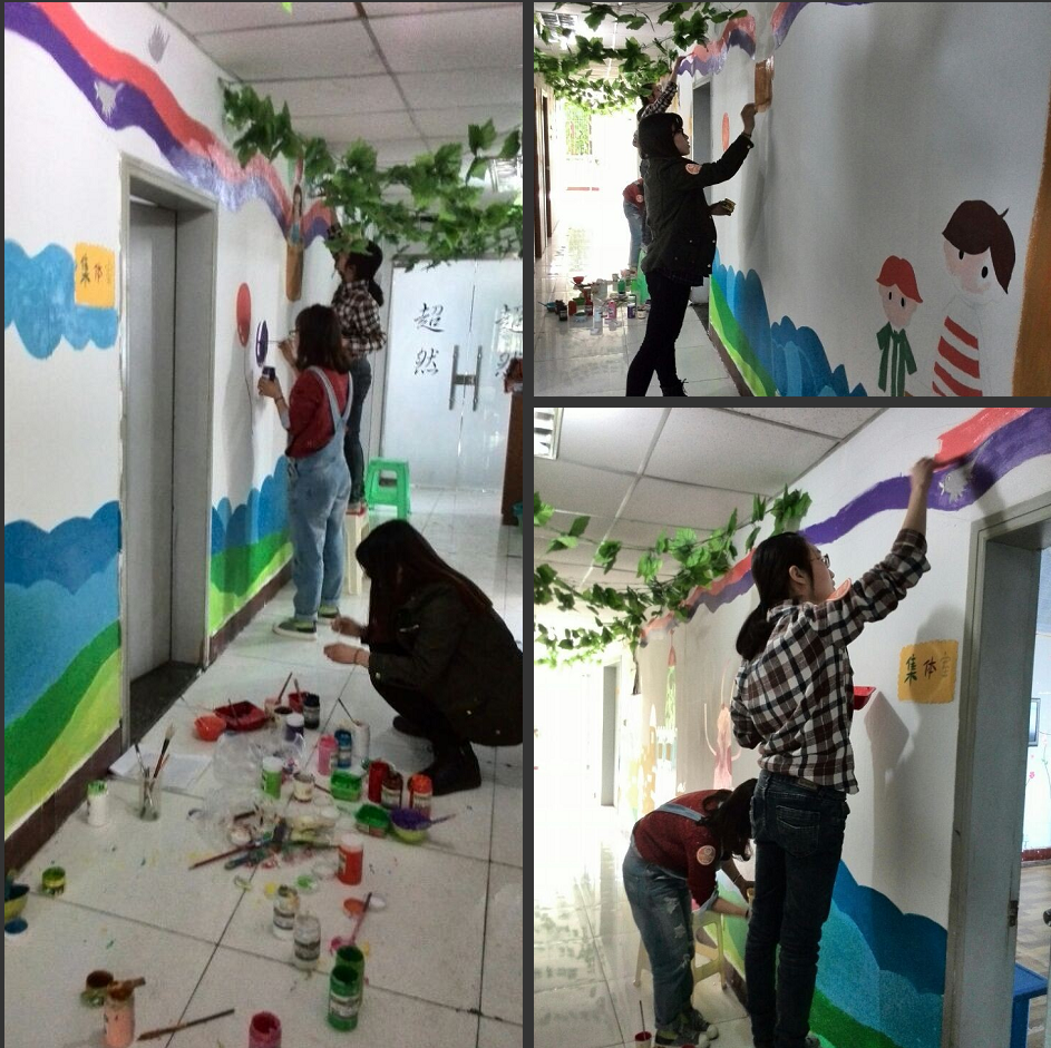 此次墙绘活动意在通过大家的描绘,为星儿们带来一些美丽的色彩和幸福滋味。