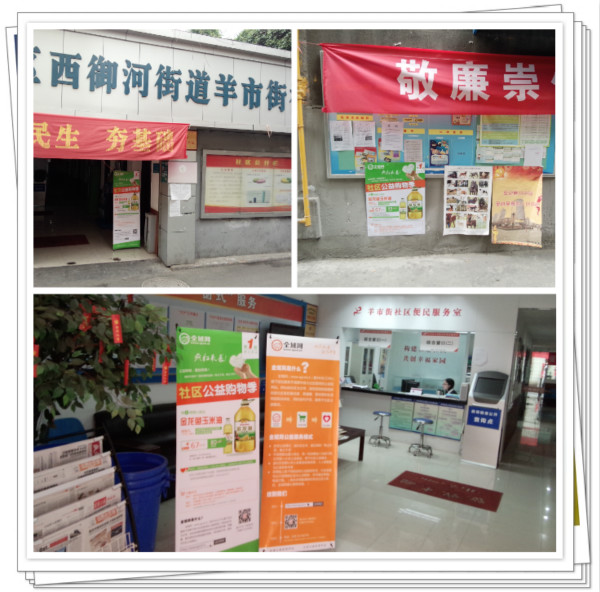 2014年5月22日,我中心全域网正式上线,社区公益购物季疯狂来袭!543社工、全域网携手成都市青羊区羊市街社区开启公益爱心商品售卖活动的第一站!