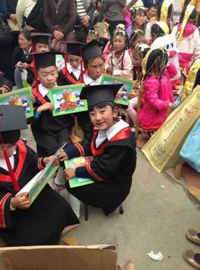 活动的最后,也是这次活动的重点了,驻点社工们为即将进入小学的小朋友穿上了毕业礼服,并为他们专门设计了毕业纪念册来证明小朋友们长大了。