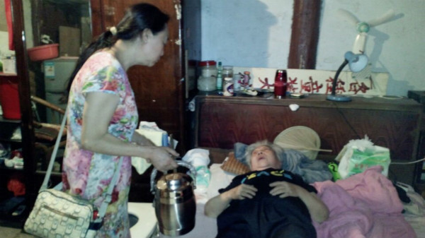 2014年6月18日,从居民口中听说,家住成都市青羊区羊市街社区东城根下街12号棚户区的陈婆婆摔伤在家,无人照顾,543社工与社区高书记、社区志愿者一起前往陈婆婆家中,探望老人。