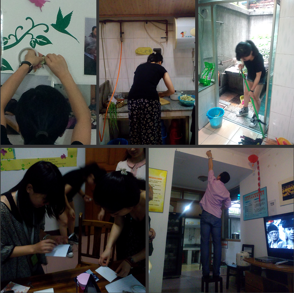 6月27日上午10点,志愿者们便准时来到了543社工中心驻羊市街的“居家养老”点,为这里的老人们做服务,还带来了实用的礼物——油和牛奶。“我把地扫了、我来帮嬢嬢切菜、我来拖地……”志愿者们分工明确,拿着清洁用具就开干了。剩下一个小伙子有点儿茫然,不知道该干什。“我可以干点儿什么……”。“小伙子,你会整电视不,这个电视好几天前就看不了……”“这是我的强项啊,一会儿就搞定”。说干就干,很快就帮婆婆把电视修好了。婆婆别提有多高兴了,一个劲的夸小伙子能干啊。等大伙儿都干完了,来吃饭的婆婆爷爷也陆陆续续来等待吃饭了,志愿者们便陪着老人唠嗑谈心,问问身体状况、儿女情况啊,聊聊最近心情怎样啊。老人们和志愿者都聊得相当投缘。