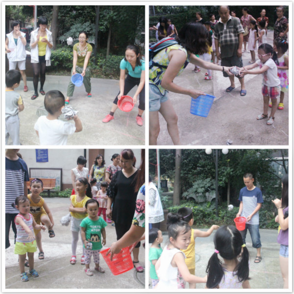 在此游戏环节,按年龄划分投球距离和投球机会。孩子投纸球,家长拿篮子接纸球;家长投球,孩子接球,旨在发展亲子间的协调性与配合性,锻炼孩子的灵敏性。