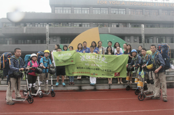 9月3日上午10点,在主持人热情洋溢的开场白中,“孤独的行走”之成都—拉萨“突破之旅”出发仪式在成都市青羊区光华东三路60号盛大拉开帷幕。参与当天活动的有窦一欣一行人、成都市青羊区特殊教育中心师生、成都树德中学国际部学生、成都市同辉国际学校一至三年级学生、成都市关爱自闭症公益联盟成员、社会爱心人士、志愿者代表以及各大媒体代表。