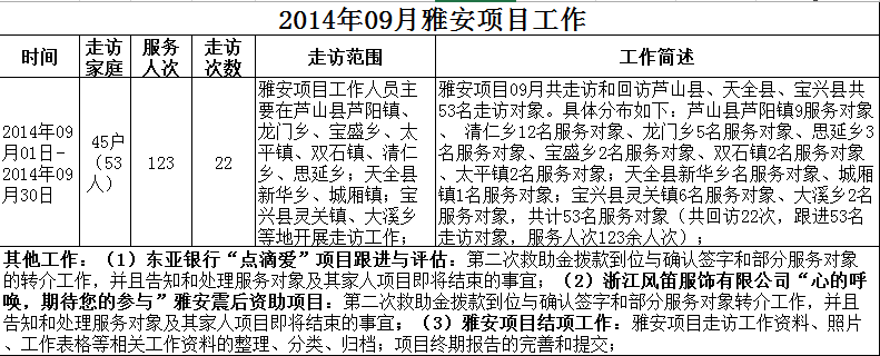 【雅安项目】2014年09月工作简述
