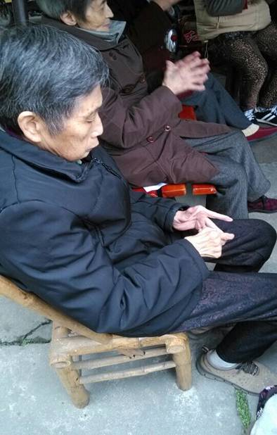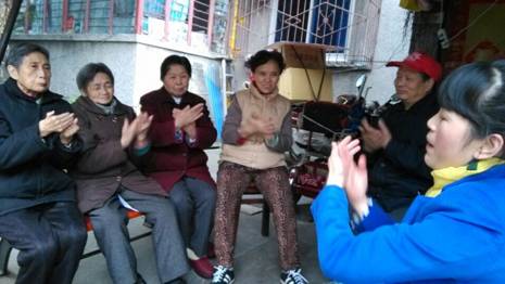 简单的自我介绍之后是活动热身部分,经典的怀旧歌曲《东方红》,看着歌词,老人们开心的唱着,很快老人们的精力都集中到了活动之中。