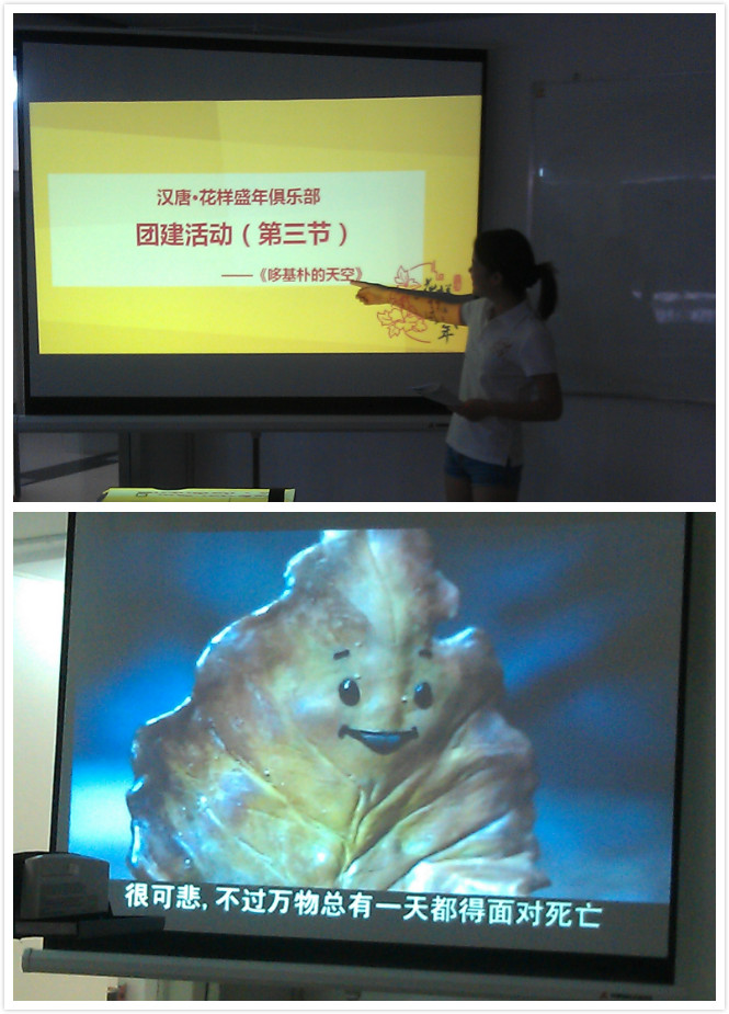 活动伊始,花样盛年俱乐部小张首先为大家阐述了本次团建活动的主要内容、活动流程及重要意义,继而为大家播放了黏土动画片《哆基朴的天空》(Doggy Poo),以童话的名义展现了一个关于成长和奉献的故事。简单的故事,简单的感动。