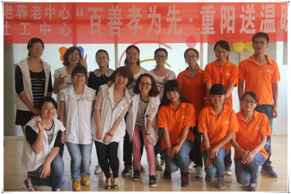 社工、志愿者与老人们欢乐合影