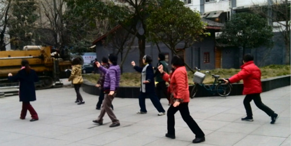 昨日上午,心灵关爱项目之第十九期老年人太极拳小组活动在成都市青羊区西华门社区如期举行。由于西华门社区的练拳场地已开始拆迁,组员与社工商讨决定,今天的课程在天主教堂的广场上开展,今后的活动场地将定在老年活动中心。