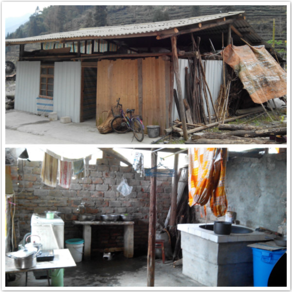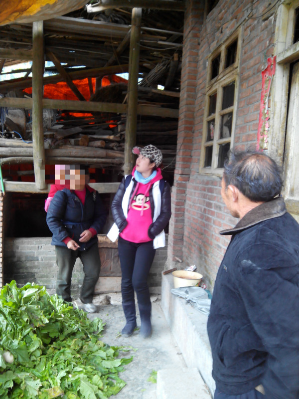 罗新宇爷爷奶奶向社工展示地震中受损的房屋