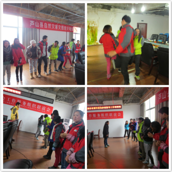 参加本次芦山联谊交流会的有543社工、成都光华社工、成都益多公益、合力社区、大爱武术、心家园六家社工机构。12月20日一大早,各社工机构人员冒着大雨集合,开始向山上进发。在爬山路上进行了考验团队沟通协作能力的社工经典游戏“穿越障碍”“报纸运水”等,各社工机构人员从最开始的协作状态不佳到默契配合,齐心协力,共商对策,出色地完成了任务。
