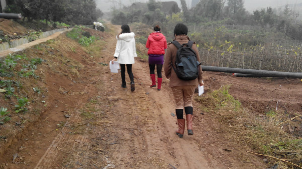 走在乡间的小路上,社工的身影