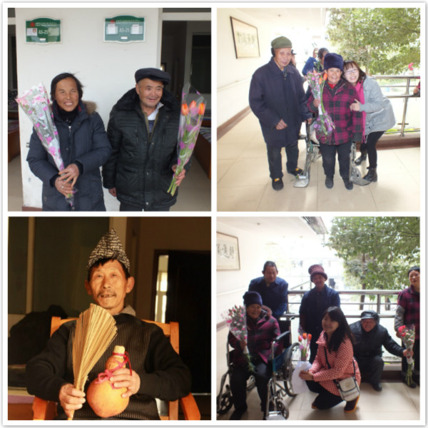 社工与志愿者们为院内爷爷奶奶们送上美丽的鲜花和深深的祝福,并热情邀请他们参与拍照,我们还细心记下老人的名字、房间号等信息,以便将照片制成影集,亲自送给他们作为留念。