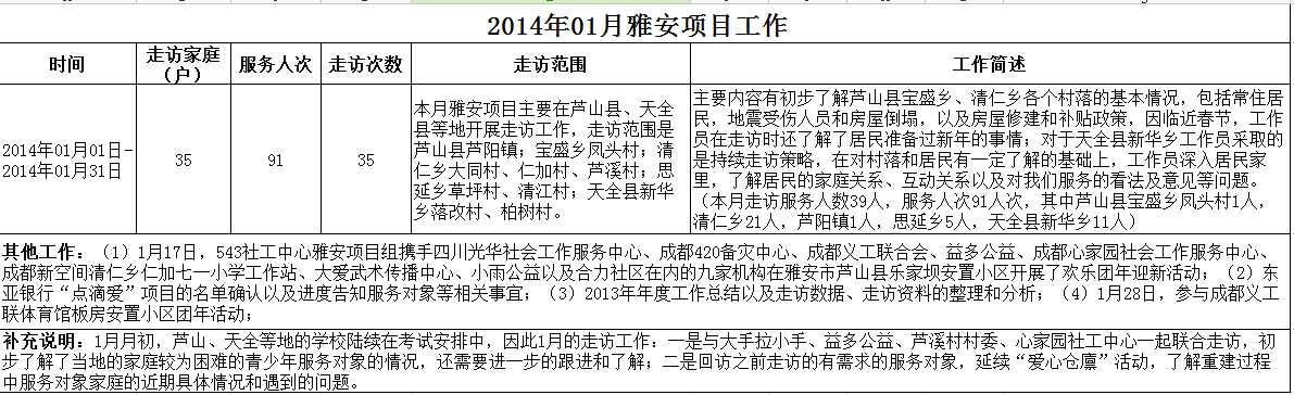 【雅安项目】2014年01月工作简述