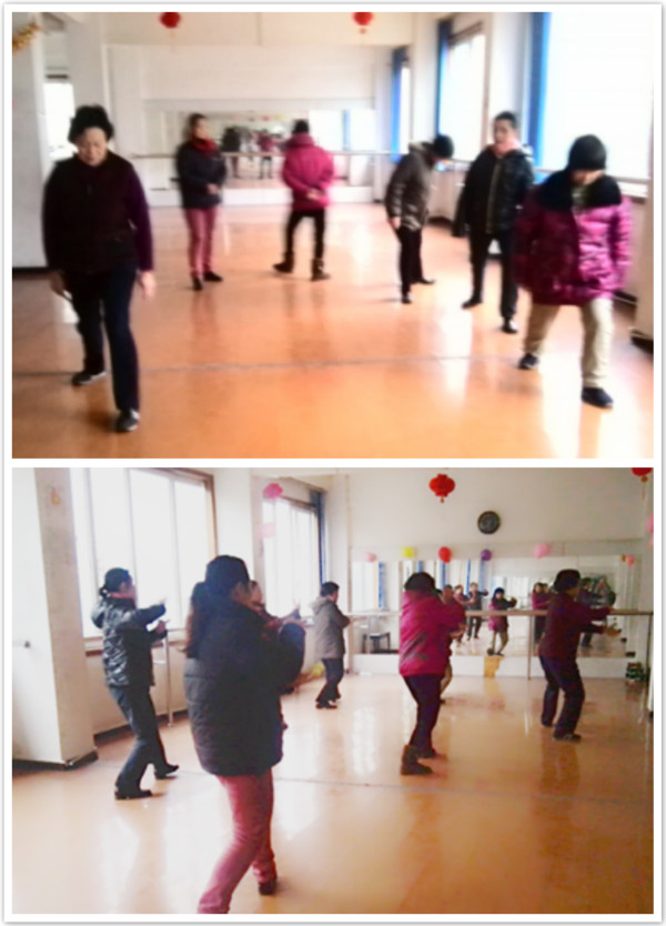 走完猫步后,在王老师的带领下,老人们开始练习太极拳