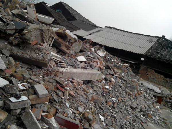 地震中,小勇家的房屋全部倒塌